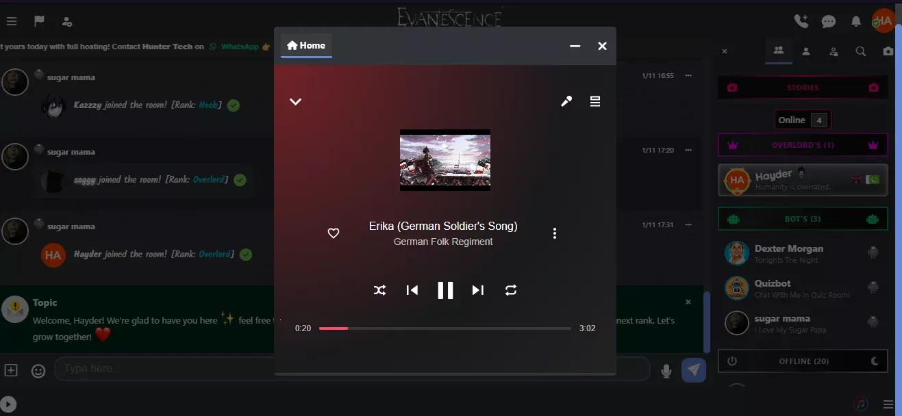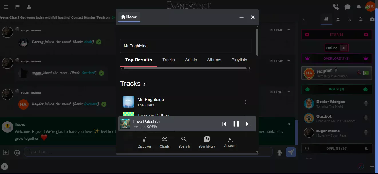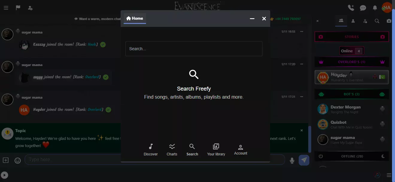 The Music Addon lets users listen to their favorite tracks right inside the chat, from any artist, anytime. It features a sleek, built-in music player that can be minimized, allowing users to keep chatting seamlessly while their music keeps playing in the background. A smooth, modern experience that brings sound and conversation together perfectly.
