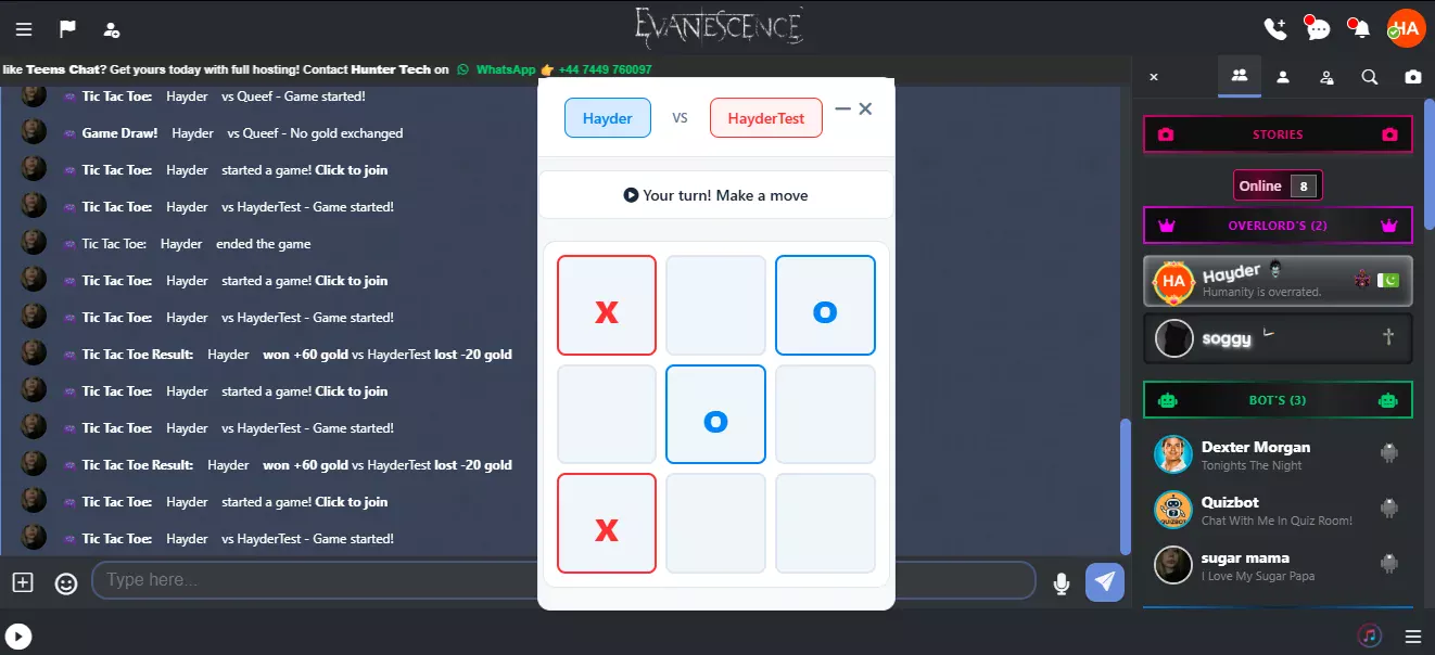 TicTacToe brings classic competitive fun to CodyChat challenge users in real-time, win gold for victories, and lose gold on defeat, keeping every match thrilling and high-stakes. Fully integrated with the chat system for smooth gameplay and fairness, this addon supports multiple languages including English, Arabic, Bulgarian, Croatian, French, German, Greek, Dutch, Portuguese, Romanian, Russian, Spanish, and Turkish.